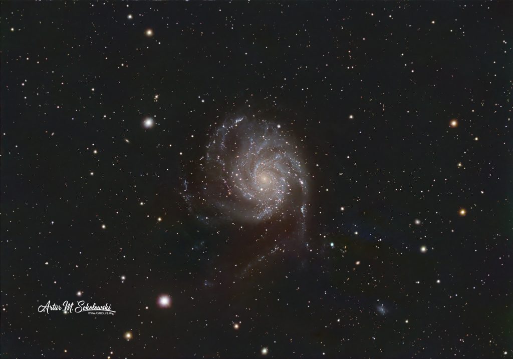 The Pinwheel Galaxy, formally known as Messier 101 (M101), is a massive grand-design spiral galaxy located approximately 21 to 25...