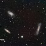 NGC 3628, shown on the right, is an unbarred spiral galaxy about 35 million light-years away in the constellation Leo....